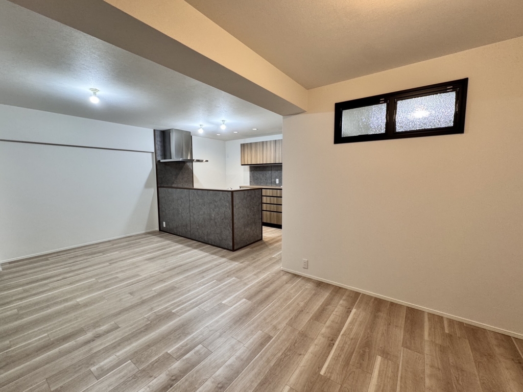 広くなったリビングと洋室との間の壁に室内窓を設置。