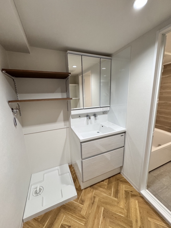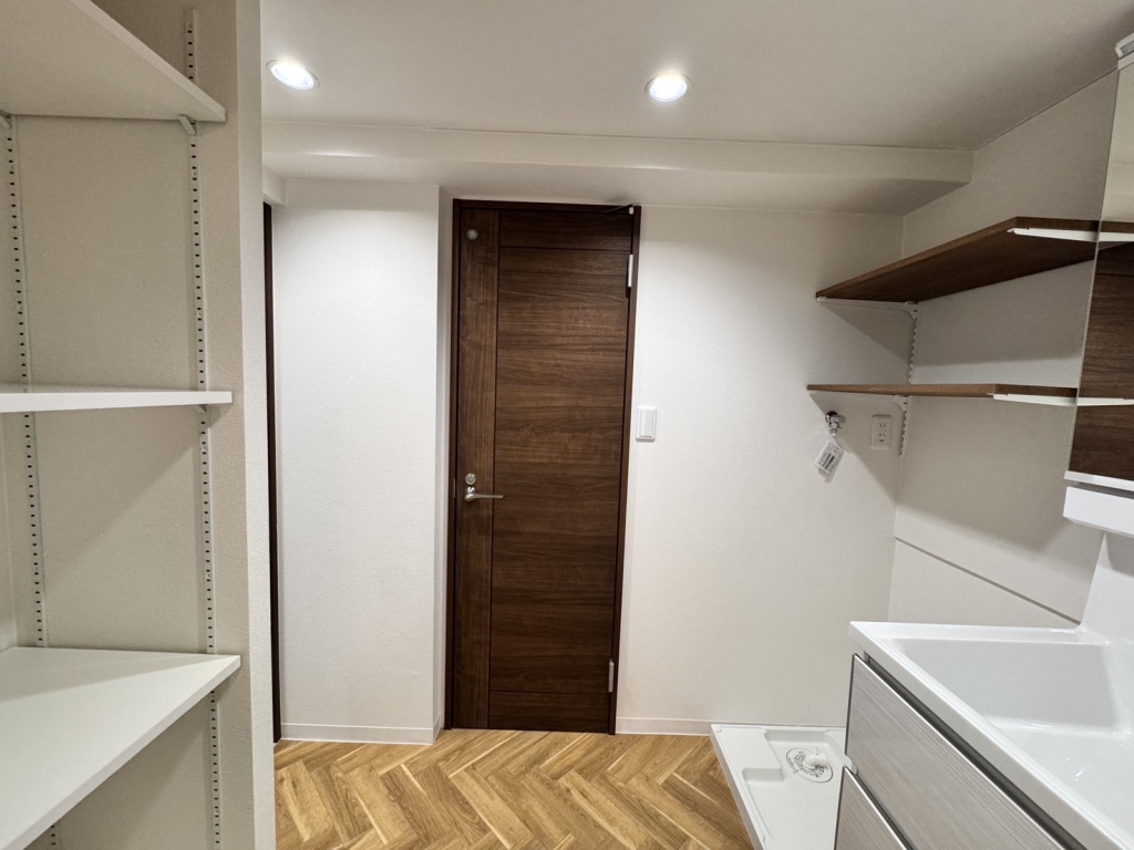 元々収納がなかった洗面脱衣所に収納棚を新設。